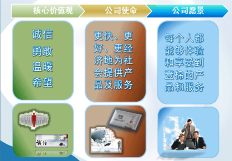 壹棉科技崇尚以人为本的生产及管理理念,通过整合现代社会的智慧、知识、信息等资源,将无线通信、互联网、信息工程有机结合,通过大量的移动增值业务平台及企业级产品,大力推动信息分享及信息化,从而帮助社会和企业不断提高信息化水平及工作效率,不断创造社会价值!
